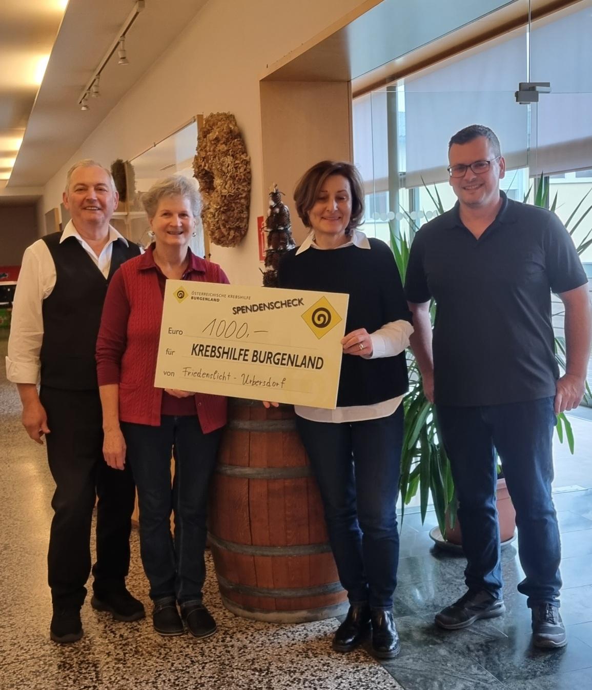 Dank der großzügigen Unterstützung der Bewohner:innen von Urbersdorf sowie vom Landgasthof Fam. Kedl konnte Ende Jänner eine Spende von € 1.000,-- an die Krebshilfe Burgenland übergeben werden.