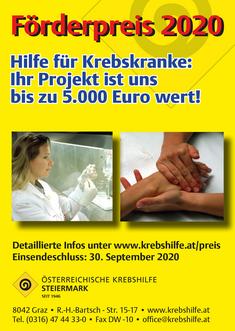 "Hilfe für Krebskranke in Beratung, Betreuung, Diagnostik und Therapie" – so lautet auch heuer das Generalthema des „Krebshilfe-Förderpreises 2020", der sich als attraktive Auszeichnung von außerordentlichen Leistungen für krebserkrankte Personen in der Steiermark etabliert hat.