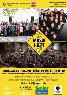 Innsbruck, 17.06.2023- Am vergangenen Samstag fand im großen Saal des Hauses der Musik in Innsbruck das Benefizkonzert der Krebshilfe Tirol unter dem Motto "MUSIK HILFT" statt. Mit drei beliebten Tiroler Ensembles wurde nicht nur ein musikalisches Highlight geboten, sondern auch ein wichtiges Zeichen gesetzt, um Menschen mit Krebs und deren Angehörige zu unterstützen.