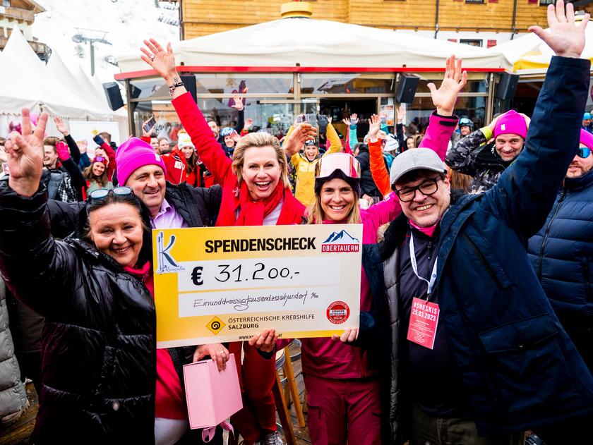 Insgesamt wurden am #pinktable und bei #sheskis 31.200,- Euros für die Pink Ribboin Aktion der Krebshilfe Salzburg gesammelt. „Einen solchen Betrag für die Österreichische Krebshilfe und Pink Ribbon generieren zu können ist unfassbar schön. Ich möchte mich nochmals ausdrücklich bei unseren Partnern Atomic, Treff 2000, Kringsalm, Louis Widmer, Flughafen Salzburg, der Liftgemeinschaft Obertauern, BMW sowie Sorella Ramonda und Shangri-La London bedanken, ohne solche starke Partner wäre #sheskis nicht möglich.“, resümiert Mona Maier, Tourismusdirektorin und Initiatorin des #sheskis Events in Obertauern. "Unfassbar, was wir heute wieder erleben durften. Frauenpower pur. Schnee, Sonne, Sport, gute Laune und viele neue Begegnungen. Und wenn am Ende noch so eine Spendensumme zusammenkommt, kann man nur glücklich sein. Vielen Dank an alle, die dies heute möglich gemacht haben. Überwältigend!", freut sich Krebshilfe Salzburg Geschäftsführer Stephan Spiegel bei der großen Scheckübergabe auf der Krings Alm.