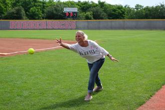 Die Chicklets freuten sich über den Besuch von Sibylle Rasinger, Geschäftsführerin der Niederösterreichischen Krebshilfe, die letzten Sonntag vor Spiel 3 gegen die Dornbirn Indians den ersten Pitch geworfen hat - und das mit vollem Elan! Die Chicklets übergaben die Spende, die sie bei ihren ersten Heimspielen für Pink Ribbon Austria sammeln konnten, und bedanken sich im Gegenzug herzlich für die wunderschöne Pink Ribbon Swarovski Schleife, die wir in Ehren halten werden. Das beste Geschenk war jedoch das Glück, das Sibylle mitgebracht hat, denn das Spiel konnten die Chicklets dann im letztendlich mit einem knappen 3:2 für sich entscheiden.