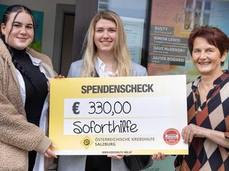 Einige Schülerinnen der Berufsschule Salzburg erstellten im Rahmen ihres Abschlusses eine Arbeit über Krebspatientinnen und die Arbeit der Krebshilfe Salzburg. Dass sich junge Menschen mit diesem Thema befassen, hat uns sehr gefreut. Als die Schülerinnen dann auch noch von einem "Notfall" hörten, den die Krebshilfe mit einer finanziellen Soforthilfe unterstützt, zögerten sie nicht lange und sagten ihre Hilfe zu. Es wurde eine Ostereiersammelaktion gestartet und Spenden für die betroffene Familie (alleinerziehende krebskranke Mutter und ihre Kinder, der Vater ist gewaltätig und spielsüchtig) gesammelt. "Vielen herzlichen Dank. Ihr seid großartig. Es war mir eine bsorndere Freude mit jungen interessierten Menschen das schwere Thema 'Krebs' zu besprechen", so Krebshilfe Psychhoonkologin Martha Lepperdinger bei der Spendenübergabe.