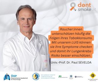 Der Online-Symptom-Check mit LUIS , dem virtuellen Lungenarzt, wird man von LUIS in wenigen Schritten durch mögliche Symptome und Beschwerden gelotst. Am Ende des Tests erhält man eine Einschätzung des momentanen Gesundheitszustandes. Plus Verlinkung zu den möglichen Angeboten für einen Rauchstopp vom Rauchfrei-Telefon bzw. zu dem/der nächsten Lungenfacharzt/ärztin.